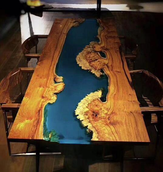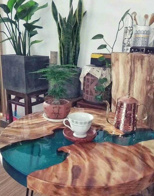 慢慢的河流桌的設(shè)計(jì)理念進(jìn)入國(guó)內(nèi),開始有一些廠家開始用樹脂制作河流桌,成品也是相當(dāng)?shù)拿垒喢缞J。下面我們可以欣賞一些成品。