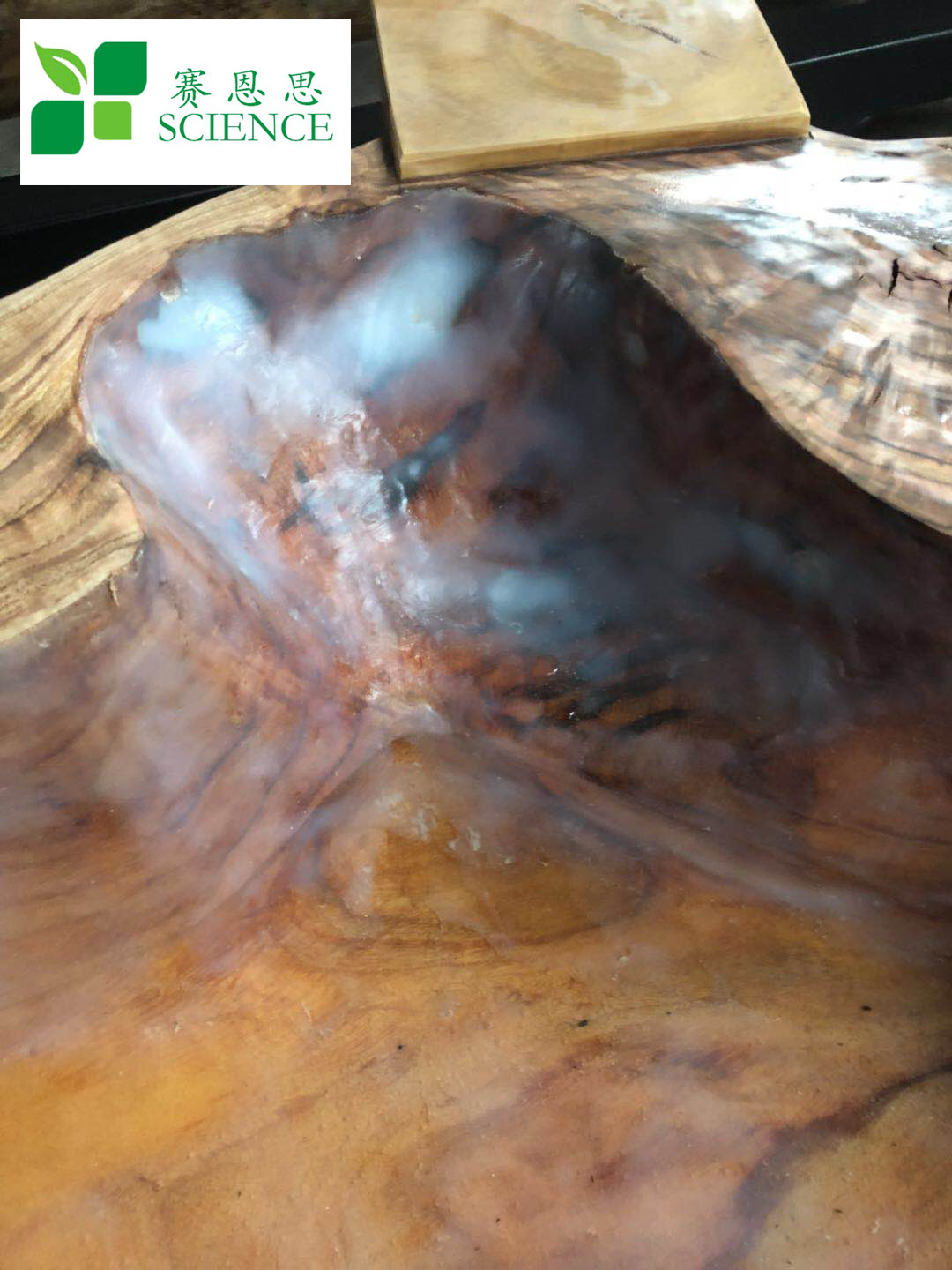 東莞賽恩思品牌的環(huán)氧樹脂膠用途廣泛,主要分為兩種:環(huán)氧樹脂軟膠與環(huán)氧樹脂硬膠。由于樟木的硬度和長期浸水的環(huán)境,茶臺并不適用環(huán)氧樹脂硬膠,其原因是樟木長期浸泡會導(dǎo)致木頭輕微變形。如果是硬膠覆蓋在表面會使膠水出現(xiàn)裂紋從而出現(xiàn)漏水情況,硬膠的收縮性較差。因為軟膠的附著力和收縮性強,覆蓋后就算會有輕微變形也不會受到影響。5013AB固化后表面偏軟,軟度為邵氏A(SHORE A)55-62。