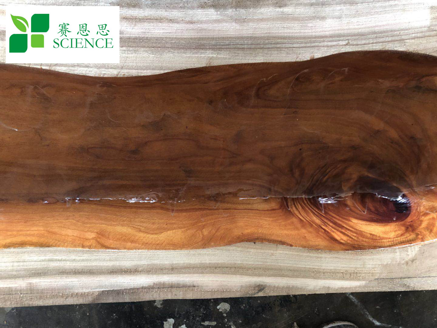 操作過程:5013AB為雙組份環(huán)氧樹脂膠,比例為3:1;當(dāng)A膠(環(huán)氧樹脂)和B膠(固化劑)按照比例混合好之后開始攪拌,瞬時間攪拌5分鐘左右便可開始覆蓋木頭表面。